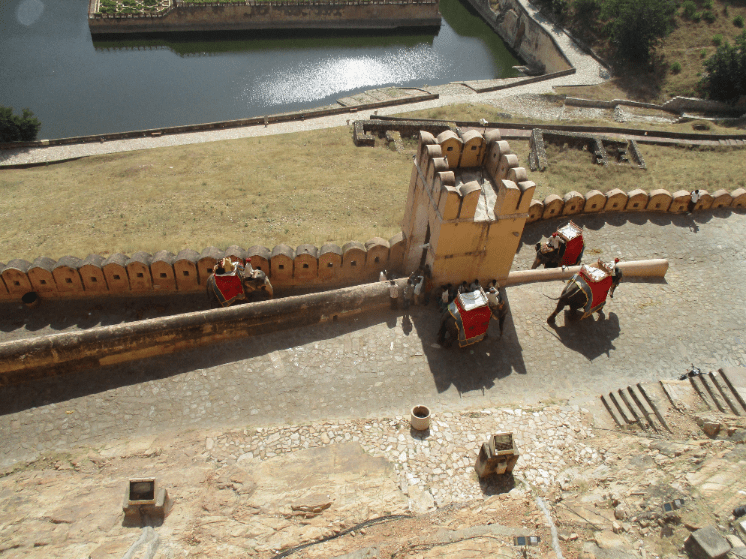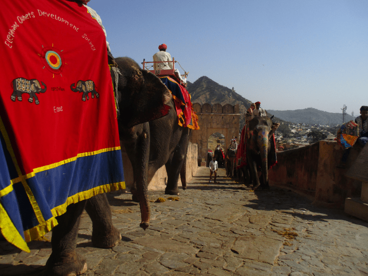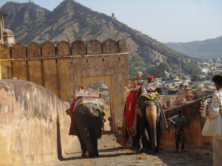 All this is great, but no one told me about the elephants. There are 120 of them carrying people in a steady procession up the mountain to the main courtyard past hordes of touts selling textiles, carvings, umbrellas and photos – maybe they should use the tunnel.